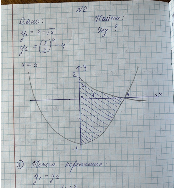 Задача №2. Фигура, расположенная на плоскости Оху, вращается около координатной оси. Вычислить объёмы полученного тела вращения. Уравнения линий, ограничивающие фигуру задача 2