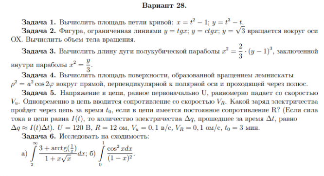 ДЗ 1: Приложение определенного интеграла вариант 28
