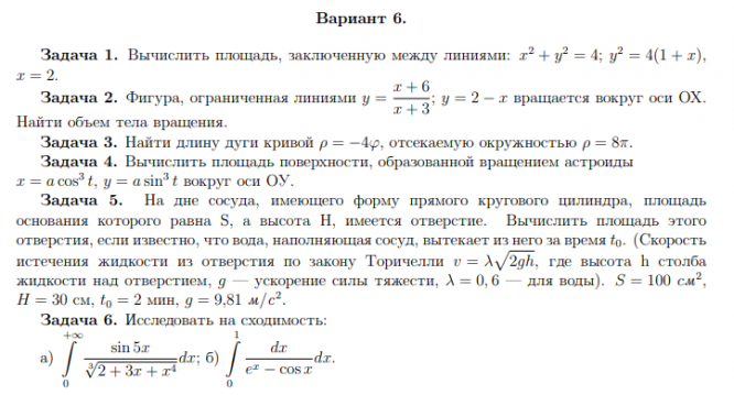 Вариант 6 - ДЗ №1 - Определённый интеграл - СМ,ФН2