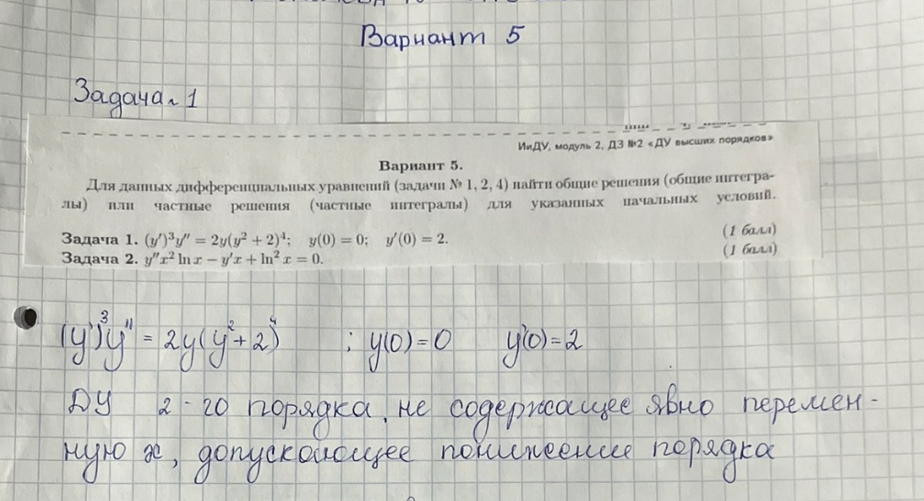 ДЗ 2: Дифференциальные уравнения высших порядков вариант 5