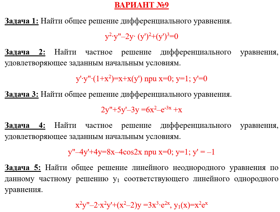 💥💥💥ДЗ № 2 - Вариант 9 - Дифференциальные уравнения для МТ, РК, Э-5, ИБМ 🌟🌟🌟