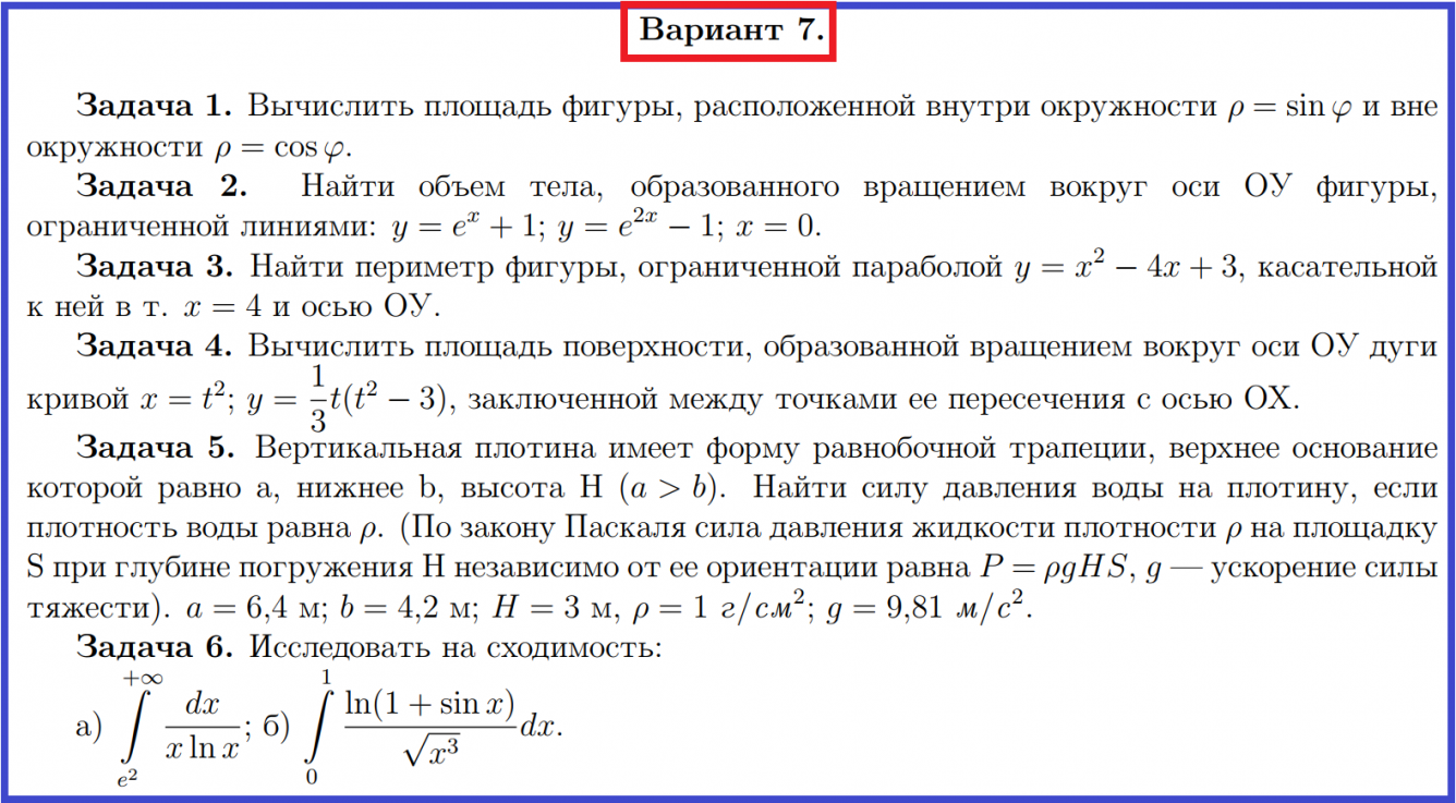 💥💥💥2025г - Вариант 7 - Приложение определенного интеграла (ЗАЧТЕНО) 🌟🌟🌟