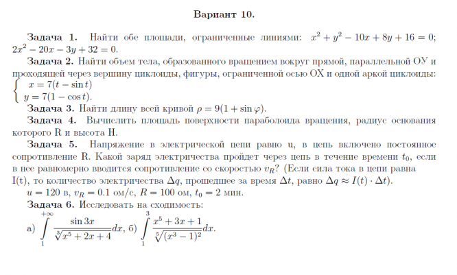 ДЗ 1: Приложение определенного интеграла вариант 10