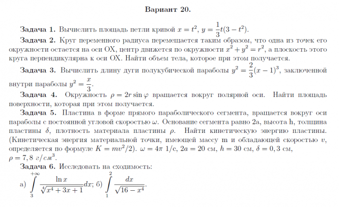 ДЗ 1: Приложение определенного интеграла вариант 20