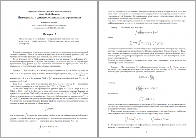 Лекции: П. Л. Иванков - Конспект лекций по "Интегралы и дифференциальные уравнения"