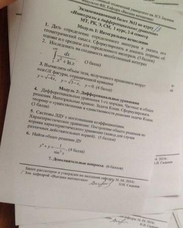 Для студентов МГТУ им. Н.Э.Баумана по предмету Интегралы и дифференциальные уравнения (ИиДУ)БилетыБилеты