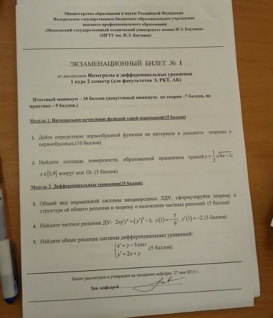 Для студентов МГТУ им. Н.Э.Баумана по предмету Интегралы и дифференциальные уравнения (ИиДУ)БилетыБилеты
