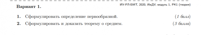 Вопросы/задания к контрольной работе 1: Неопределенный интеграл