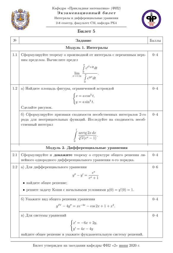 Для студентов МГТУ им. Н.Э.Баумана по предмету Интегралы и дифференциальные уравнения (ИиДУ)БилетыБилеты