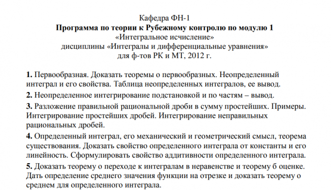 Вопросы/задания к контрольной работе 1: Интегральное исчисление