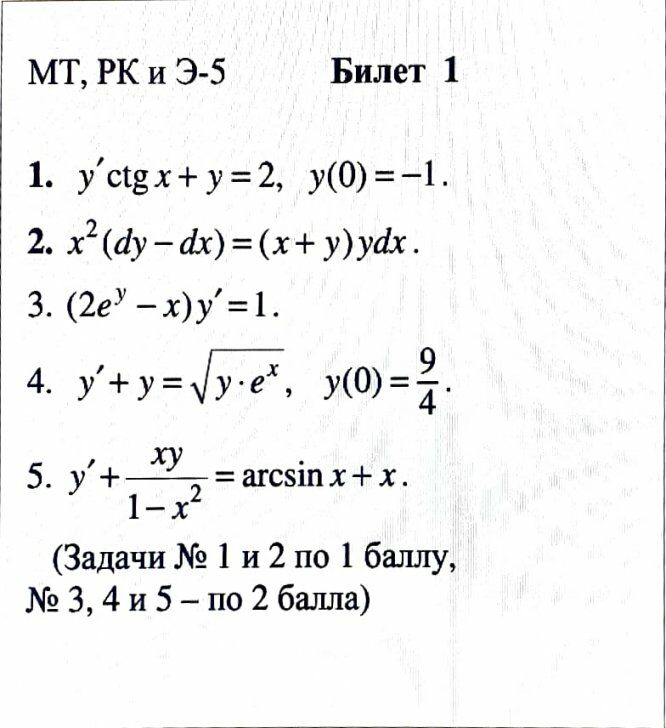 Для студентов МГТУ им. Н.Э.Баумана по предмету Интегралы и дифференциальные уравнения (ИиДУ)Билеты КР №2 по диффурам (для МТ, РК, Э-5)Билеты КР №2 по диффурам (для МТ, РК, Э-5)
