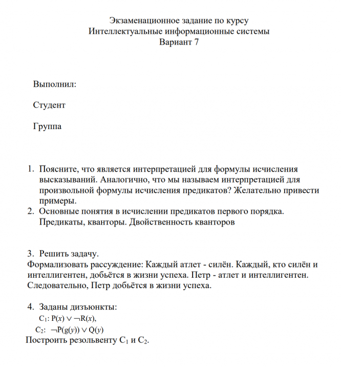 Для студентов ИДДО НИУ «МЭИ» по предмету Интеллектуальные информационные системы (ИИС)Полный курс Итоговая работа (Экзаменационное письменное задание) - Вариант 7Полный курс Итоговая работа (Экзаменационное письменное задание) - Вариант 7