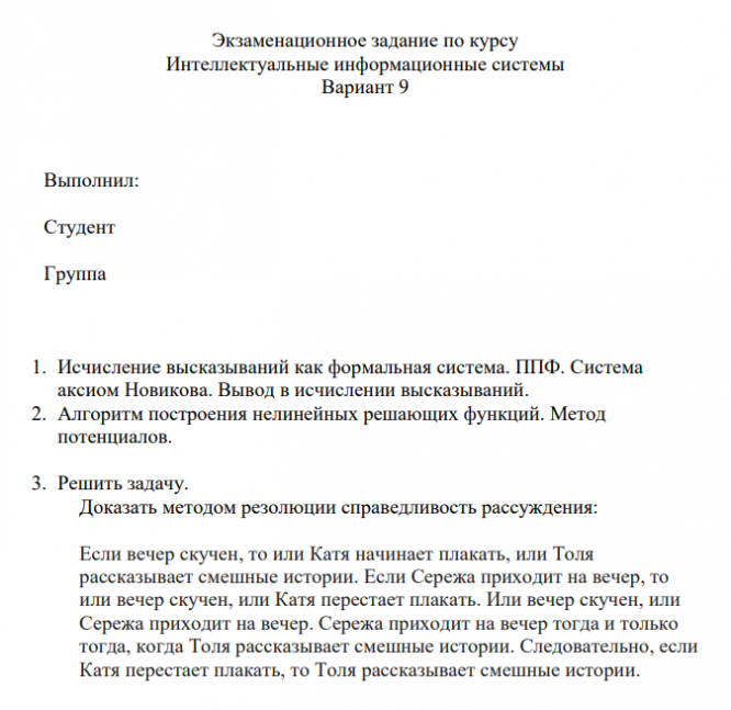 Для студентов ИДДО НИУ «МЭИ» по предмету Интеллектуальные информационные системы (ИИС)Полный курс Итоговая работа (Экзаменационное письменное задание) - Вариант 9Полный курс Итоговая работа (Экзаменационное письменное задание) - Вариант 9