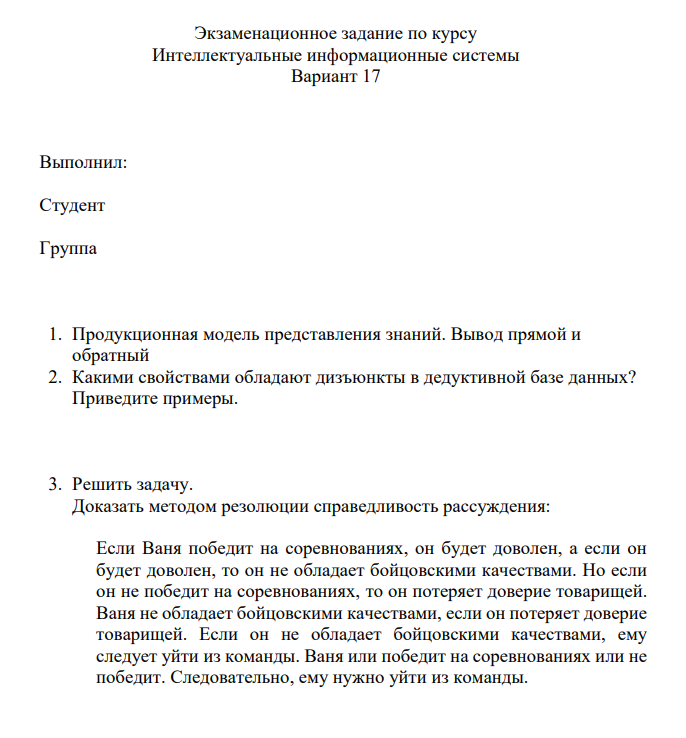 Для студентов ИДДО НИУ «МЭИ» по предмету Интеллектуальные информационные системы (ИИС)Полный курс Итоговая работа (Экзаменационное письменное задание) - Вариант 17Полный курс Итоговая работа (Экзаменационное письменное задание) - Вариант 17