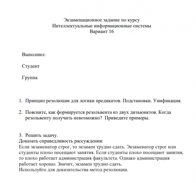 Для студентов ИДДО НИУ «МЭИ» по предмету Интеллектуальные информационные системы (ИИС)Полный курс Итоговая работа (Экзаменационное письменное задание) - Вариант 16Полный курс Итоговая работа (Экзаменационное письменное задание) - Вариант 16