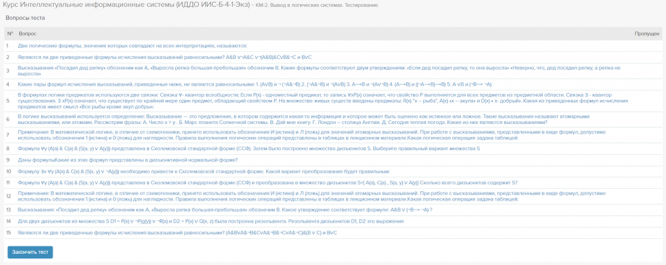 Ответы к зачёту 1-15: КМ-2. Вывод в логических системах. Тестирование вариант 1, 2, 3