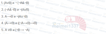 Какие пары формул исчисления высказываний, приведенные ниже, не являются равноси