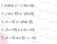 Какие пары формул исчисления высказываний, приведенные ниже, являются равносильными: