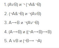 Какие пары формул исчисления высказываний, приведенные ниже, не являются