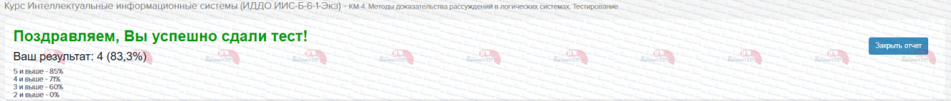 Для студентов ИДДО НИУ «МЭИ» по предмету Интеллектуальные информационные системы (ИИС)Интеллектуальные информационные системы - КМ-4. Методы доказательства рассуждений в логических системах. ТестированиеИнтеллектуальные информационные системы - КМ-4. Методы доказательства рассуждений в логических системах. Тестирование