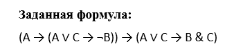 (A → (A ∨ C → ¬B)) → (A ∨ C → B & C)