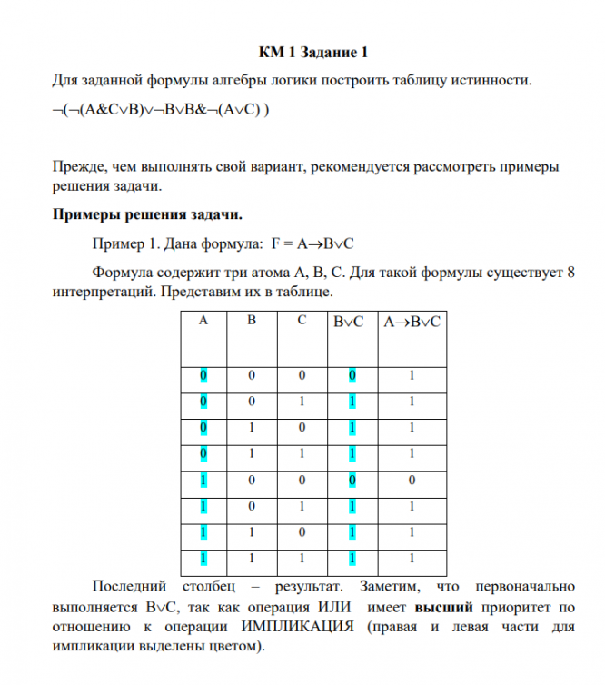 ДЗ 1-5: КМ-1. Алгебра логики высказываний. Контрольная работа вариант 11