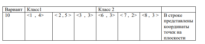 Практическое задание 9 Построить линейную разделяющую функцию для объектов двух классов Класс 1 и Класс 2. Координаты точек для каждого класса заданы в таблице (по 3 точки в каждом классе). Предварительно представьте 6 точек на плоскости. Когда решение найдено – нарисуйте прямую, разделяющую классы 1 и 2 в соответствии с полученным уравнением.