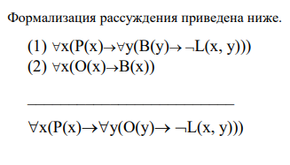 Построить множество дизъюнктов для заданного рассуждения. Для этого привести посылки и отрицание заключения к ПНФ, а затем к Сколемовской стандартной форме. Методом резолюции вывести пустой (тождественно ложный) дизъюнкт из исходного множества дизъюнктов, доказав тем самым справедливость рассуждения. (Рассуждение берётся из задания 7)