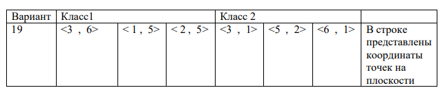 Построить линейную разделяющую функцию для объектов двух классов Класс 1 и Класс 2. Координаты точек для каждого класса заданы в таблице (по 3 точки в каждом классе). Предварительно представьте 6 точек на плоскости. Когда решение найдено – нарисуйте прямую, разделяющую классы 1 и 2 в соответствии с полученным уравнением.