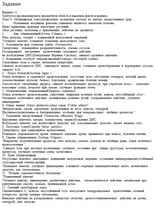 Для студентов МГТУ им. Н.Э.Баумана по предмету Интеллектуальные технологии и системыДомашнее задание №2 "Построение и реализация моделей представления и обработки знаний интеллектуальных систем" (вариант №21)Домашнее задание №2 "Построение и реализация моделей представления и обработки знаний интеллектуальных систем" (вариант №21)