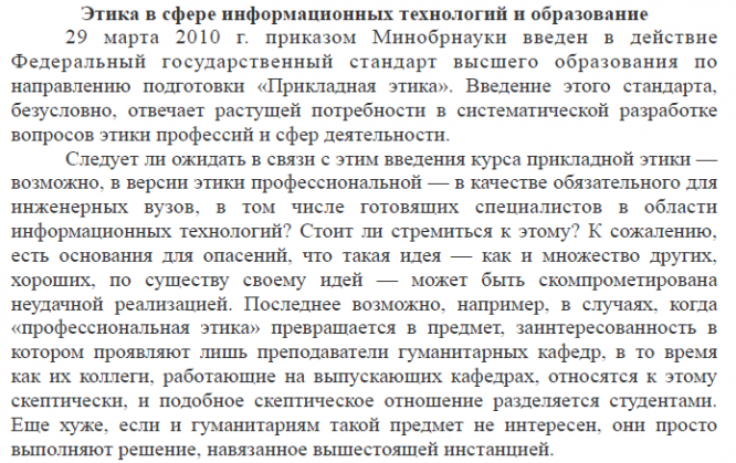 Главная » Учебные материалы » Инженерная этика » Домашние задания » МГТУ им. Н.Э.Баумана » 5 семестр » Домашнее задание №1 "Этика в сфере информационных технологий"