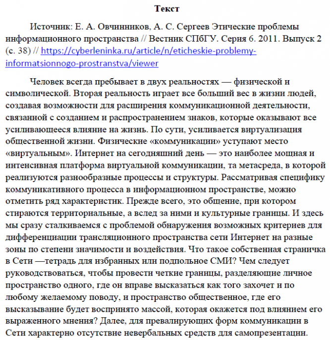 ДЗ: Домашнее задание №1 "Этические проблемы информационного пространства"