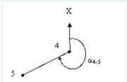 Вычислить дирекционный угол линии 4-5 (см.рис.) ,если для точки (4) x = 150,00 м, y = 286,00 м; для точки (5) x = 100,00 м, y = 200,00 м