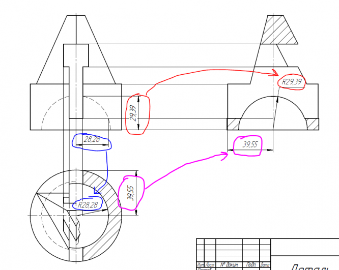 Обычно у людей возникает проблема с третьим видом и с разрезами. С таким чертежом достаточно на неизвестном участке найти цифру размера. А потом поискать такую же цифру на остальных видах. Как только она найдена, ты знаешь, откуда его откладывать.