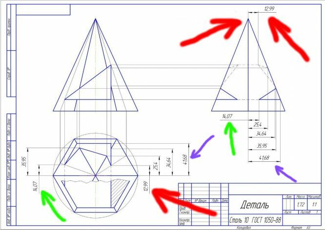 Смысл в том, что я указываю на чертеже все размеры парами. Откуда их взять и куда поставить.