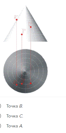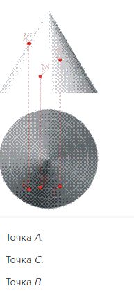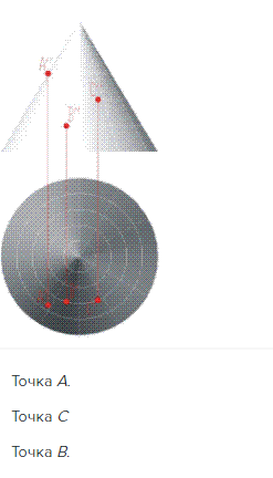 Какая из заданных точек находится внутри конуса?