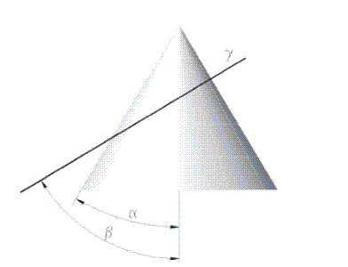 По какой линии фронтально-проецирующая плоскость упересекает коническую поверхность, если угол в больше угла а