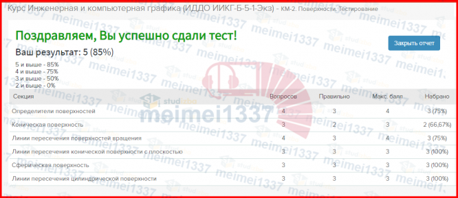 База ответов к тесту КМ-2. Поверхности. Тестирование - поможет быстро сдать вам тест.