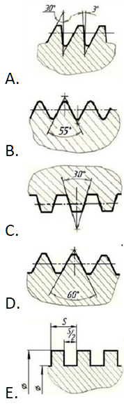 для создания большей площади опорной поверхности, предотвращения самоотвинчивания крепёжной детали F. имеет вид стержня с наружной резьбой на одном конце и конструктивным элементом для передачи крутящего момента на другом G. крепёжное изделие в форме стержня с наружной резьбой на одном конце, с головкой на другом H. крепёжное изделие с резьбовым отверстием, образующее разборное соединение с помощью винта, болта или шпильки Резьба, изображенная на рис....