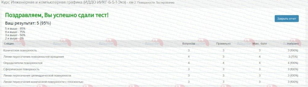 Курс Инженерная и компьютерная графика - КМ-2. Поверхности. Тестирование (95%)