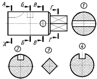 Установить соответствие выполненных на чертеже между проекцией сечений и частью детали