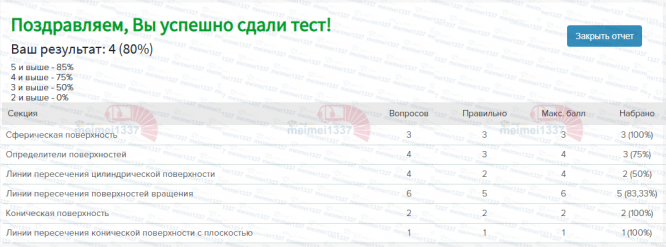 Курс Инженерная и компьютерная графика - КМ-2. Поверхности. Тестирование - 80%