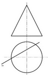 Проставьте последовательно определения в следующем порядке: прямая пересекает конус, прямая пересекает шар, прямая не пересекает конус, прямая не пересекает шар: