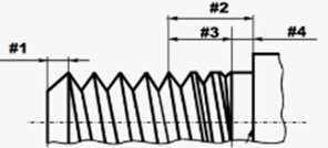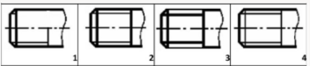Расположите обозначения частей резьбы в следующем порядке: сбег, фаска, недовод, недорез (см. рисунок ниже):