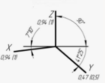 На изображении (см. ниже) у осей прямоугольной изометрии … градусов