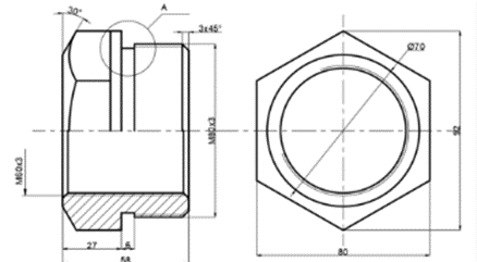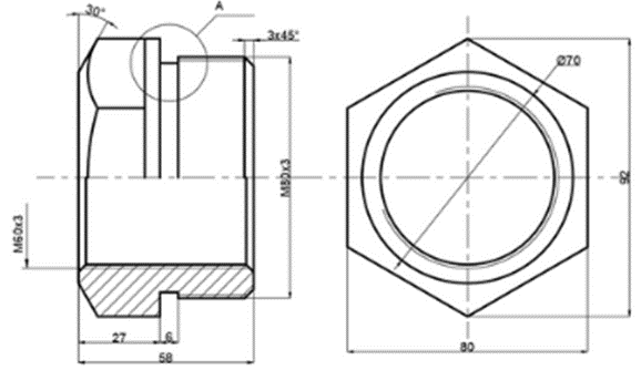 Деталь, изображенная на рисунке (см. ниже), имеет … наружную резьбу