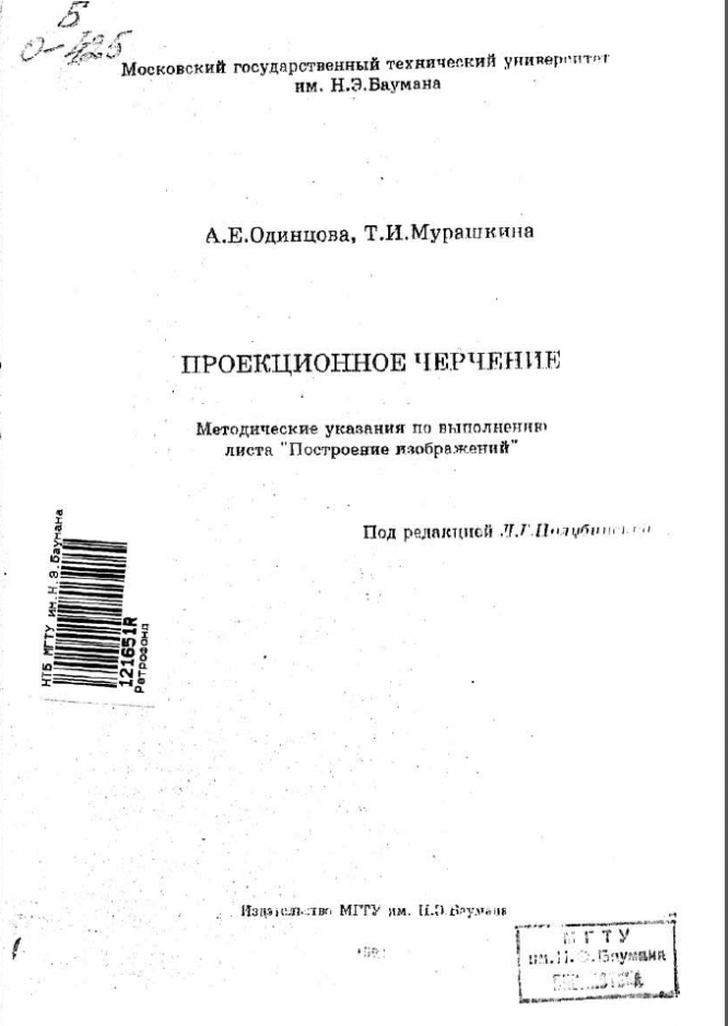 Для студентов МГТУ им. Н.Э.Баумана по предмету Инженерная графикаА.Е. Одинцова, Т.И. Мурашкина - Проекционное черчениеА.Е. Одинцова, Т.И. Мурашкина - Проекционное черчение 2015-04-23СтудИзба