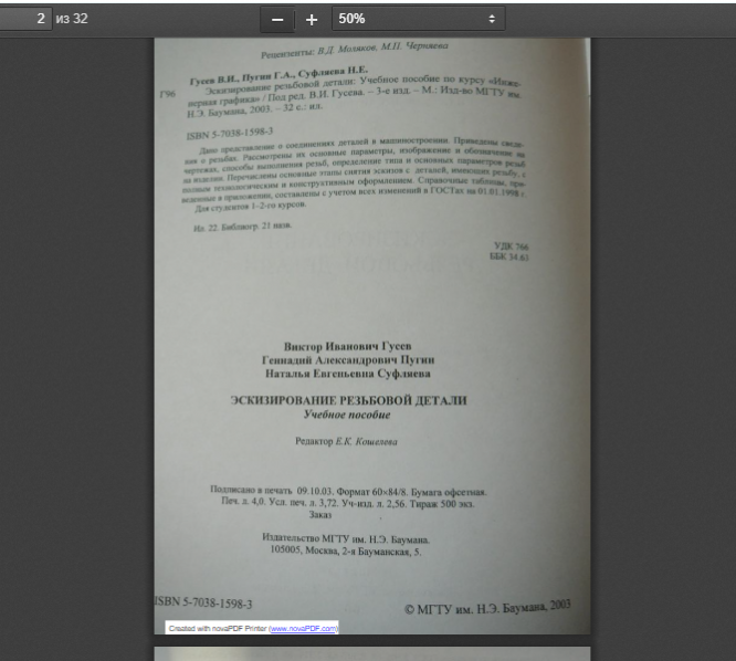 Главная » Учебные материалы » Инженерная графика » Книги » МГТУ им. Н.Э.Баумана » 2 семестр » Гусев В. И., Пугин Г. А., Суфляева Н. Е. - Эскизирование резьбовой детали