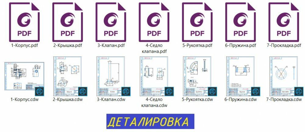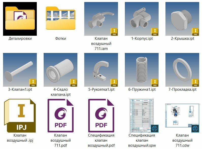 1. Все детали 3D в Inventor (.ipt).КОМПАС 3Д (.m3d) + Их чертежи деталировки в КОМПАС 3Д (.cdw) и PDF