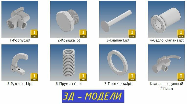 Для студентов РУТ (МИИТ) по предмету Инженерная графикаКлапан воздушный - Детали 3Д, Сборка (Inventor) + Сборочные чертежи с спецификацией (КОМПАС 3Д) + Деталировки (КОМПАС 3Д)Клапан воздушный - Детали 3Д, Сборка (Inventor) + Сборочные чертежи с спецификацией (КОМПАС 3Д) + Деталировки (КОМПАС 3Д)